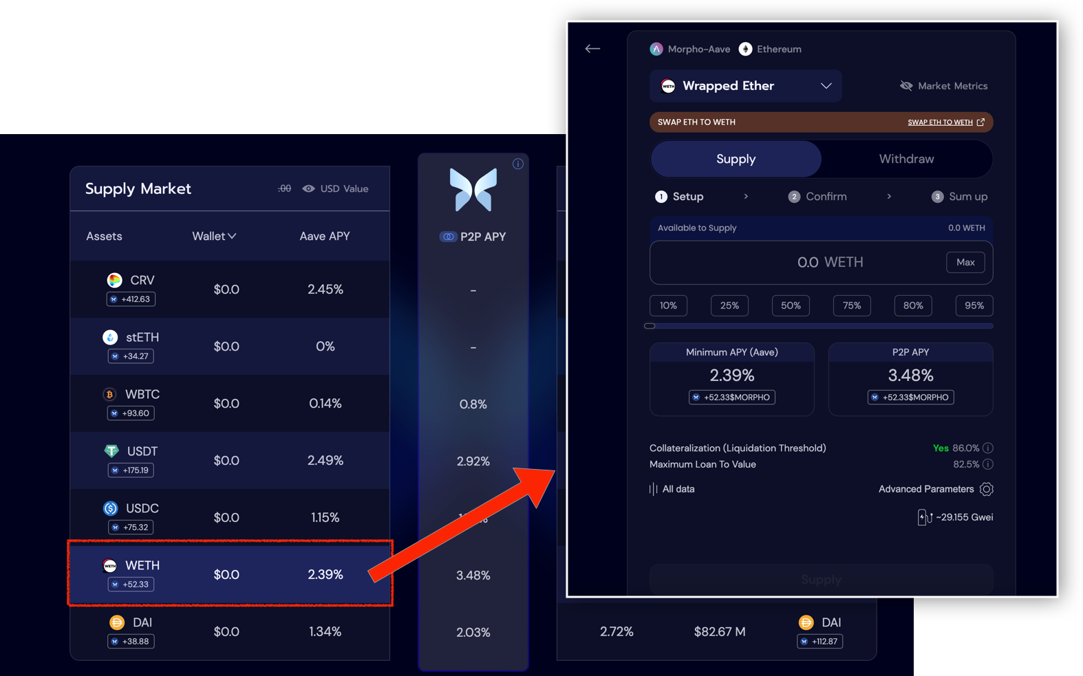 Morpho-aave https://aave.morpho.xyz/?network=mainnet